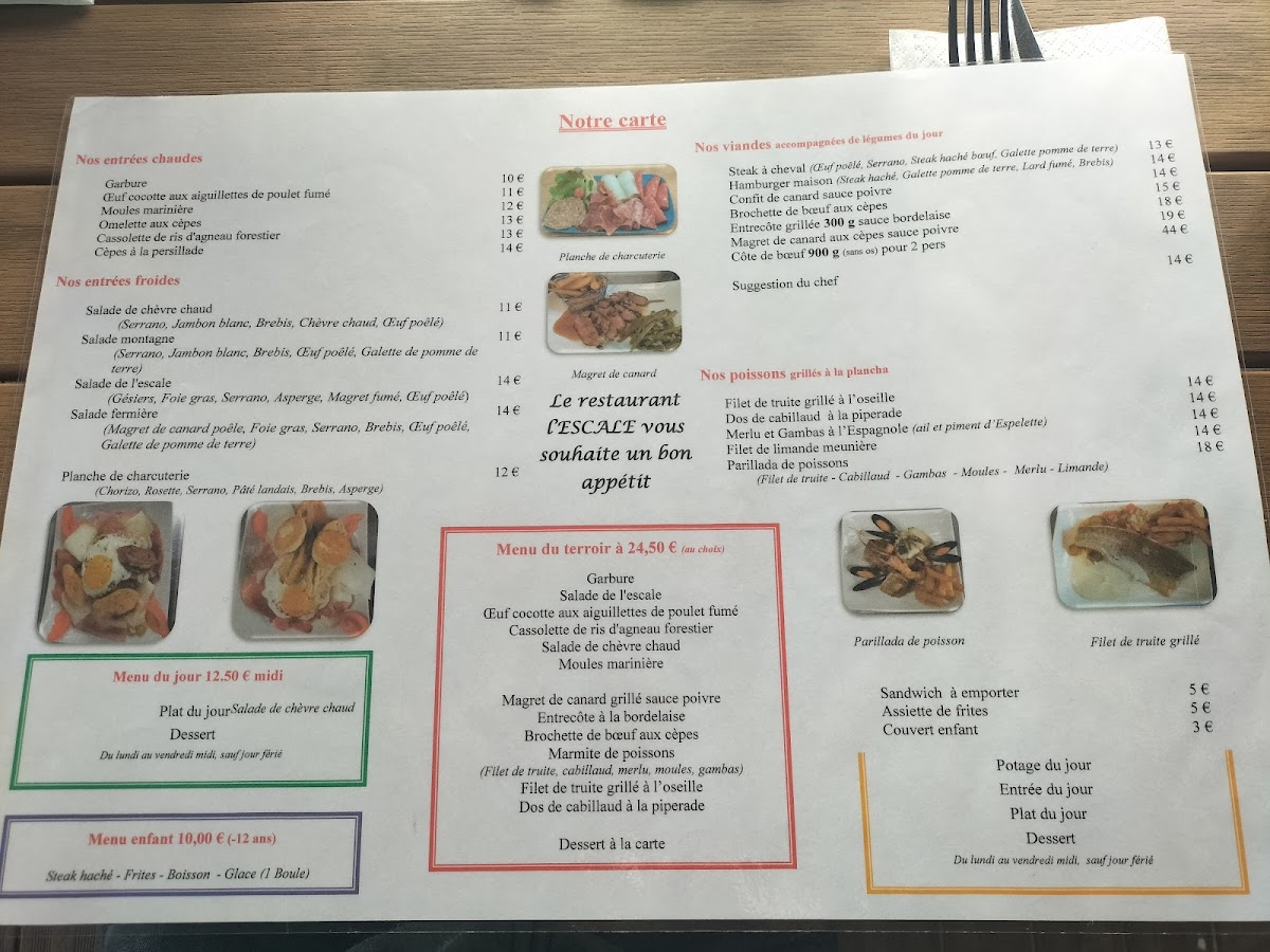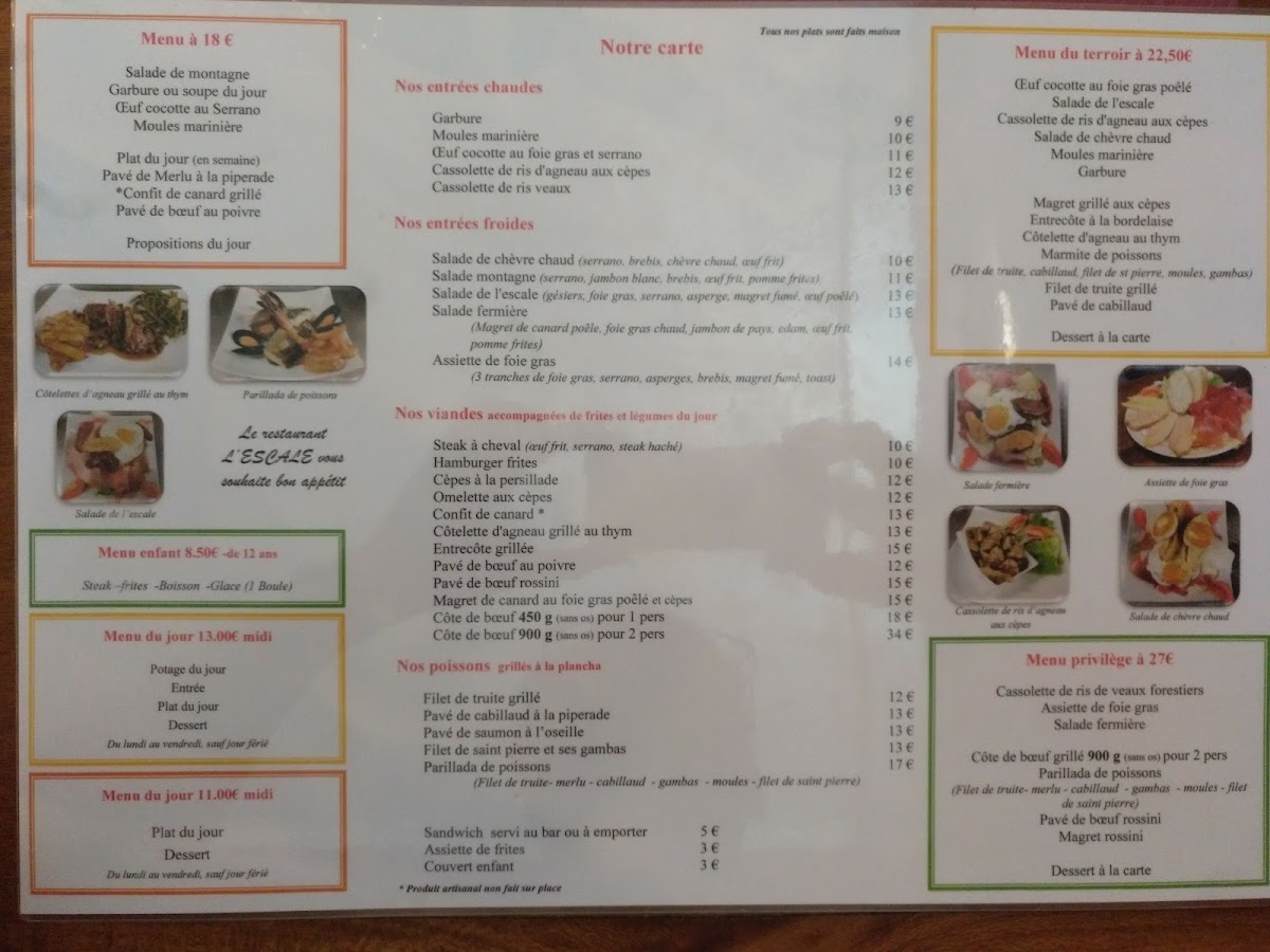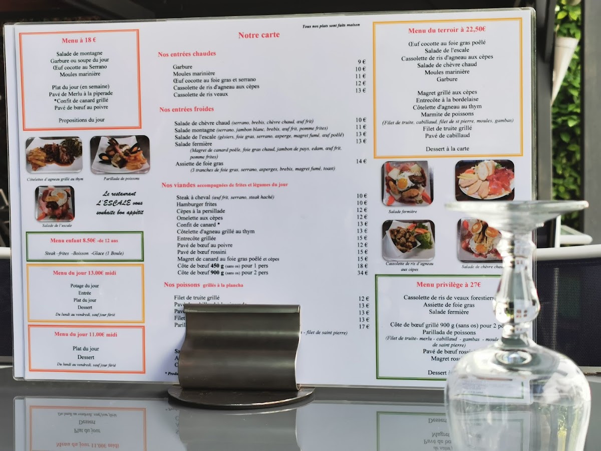 The menu at Restaurant L'escale at 2 Rue de Navarre, 64270 Auterrive, France, is a refined celebration of French gastronomy, balancing hearty classics with delicate flavors. Starters such as the Marmite de Poissons showcase a rich, aromatic blend of seafood, perfectly capturing the essence of the ocean in each spoonful. For meat lovers, the Ris D Agneau and its elegant counterpart, the Cassolette de Ris d'agneaux, highlight tender, flavorful lamb sweetbreads prepared with finesse, offering a depth of taste that lingers delightfully on the palate. The desserts are equally memorable, with the Omelette Norvégienne impressively balancing light, airy meringue with a creamy interior, while the Vacherin delivers a harmonious combination of textures and subtle sweetness that rounds off the meal beautifully. Overall, the menu at L'escale presents a thoughtful curation where each dish-from savory to sweet-is crafted with precision, making every course a testament to classic French culinary artistry.